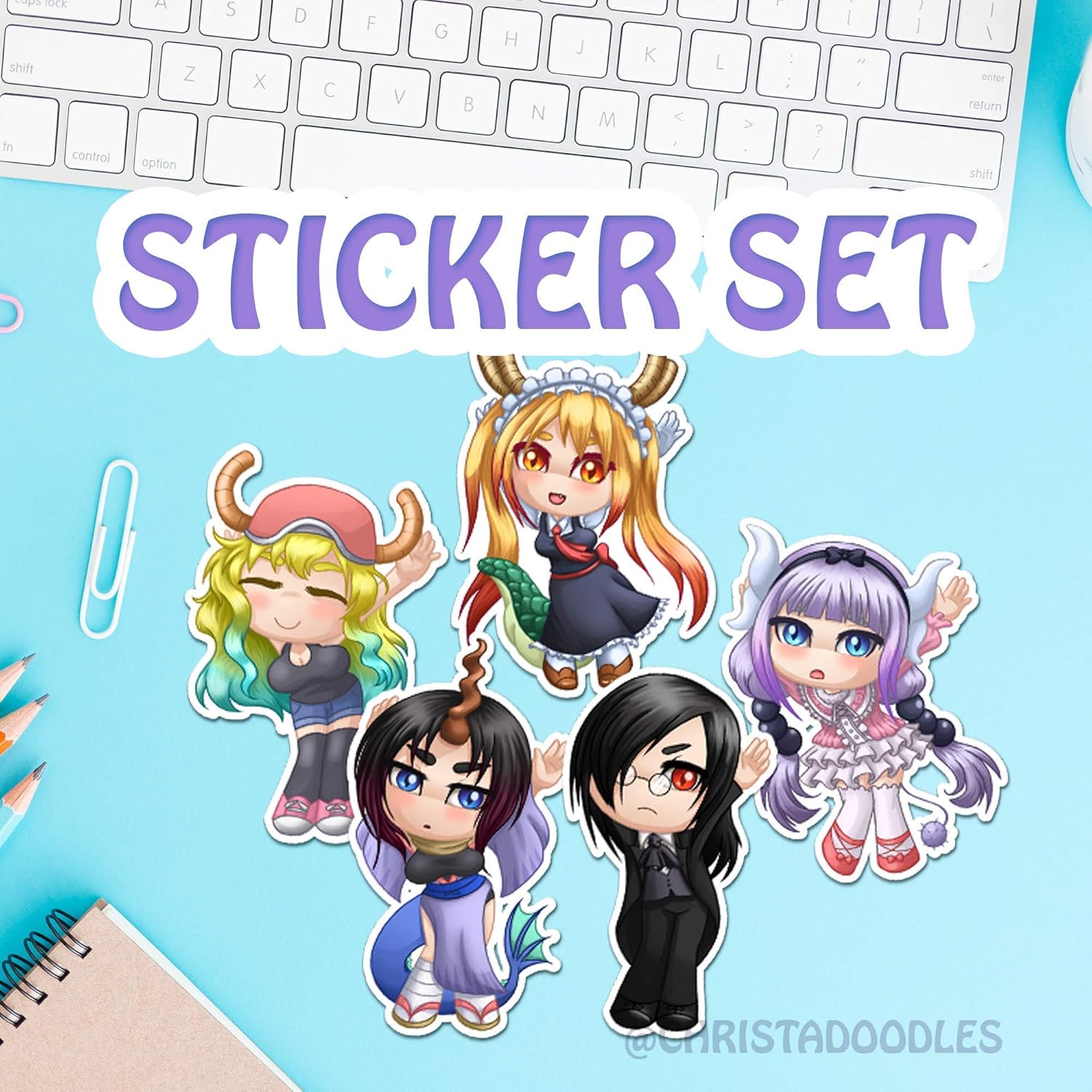 Amazon Com Miss Kobayashi Dragon Maid Cute Chibi Set Of 5 Original Artwork Sticker Pack Handmade